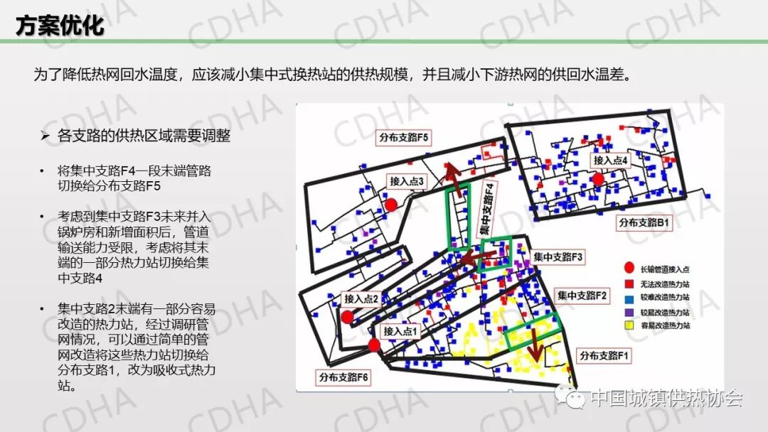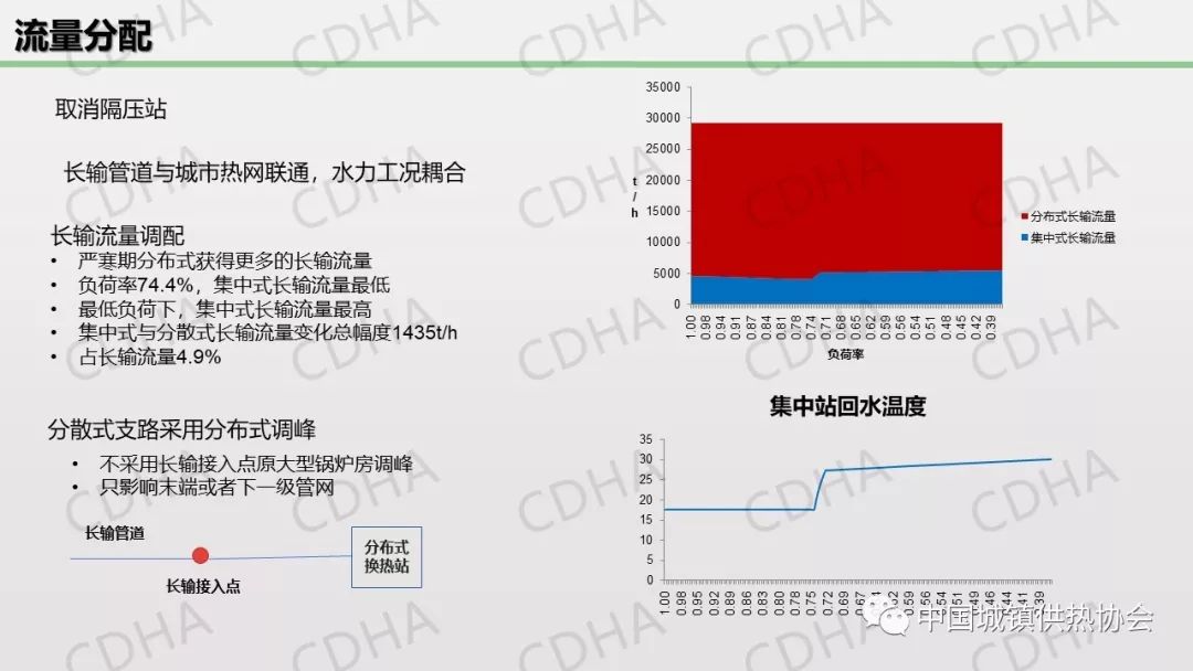 黃偉在“長輸管網(wǎng)相關(guān)技術(shù)”分論壇上作了關(guān)于此篇論文的主題演講。他介紹了該項目的研究背景、管網(wǎng)改造方案、運(yùn)行調(diào)節(jié)策略以及系統(tǒng)評價,總結(jié)提出集中與分散式相結(jié)合,通過兩者之間的流量調(diào)配和熱量調(diào)配使總回水溫度全采暖季維持在21℃左右,基于低回水溫度的供熱系統(tǒng),即使用70公里以外的電廠供熱,與本地燃?xì)忮仩t相比較依然具有顯著的節(jié)能效益和經(jīng)濟(jì)性。