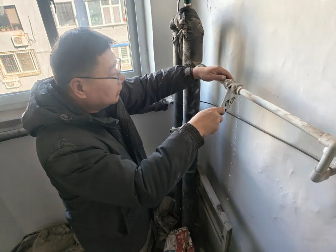 第二組黨員則分為六個小分隊,五個小分隊深入小區(qū)22戶獨居老人、困難群眾家中開展“訪民問暖”服務(wù),另一個小分隊則到近期反映不熱問題較為集中的18號樓進行服務(wù)。每到一戶,黨員們都仔細測量室內(nèi)溫度,認真檢查供暖情況,對發(fā)現(xiàn)的供暖管道堵塞、除污器積污等問題,現(xiàn)場進行清洗和維修。獨居老人王大媽住在一樓,家中溫度偏低。黨員們檢查確定是除污器嚴重堵塞導(dǎo)致管網(wǎng)循環(huán)不暢,隨后進行了清洗作業(yè)。半小時后,室內(nèi)溫度明顯上升。王大媽感動地說:“多虧了你們,解決了我過冬的大問題!”。