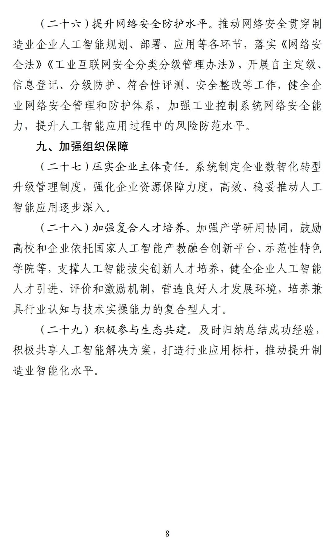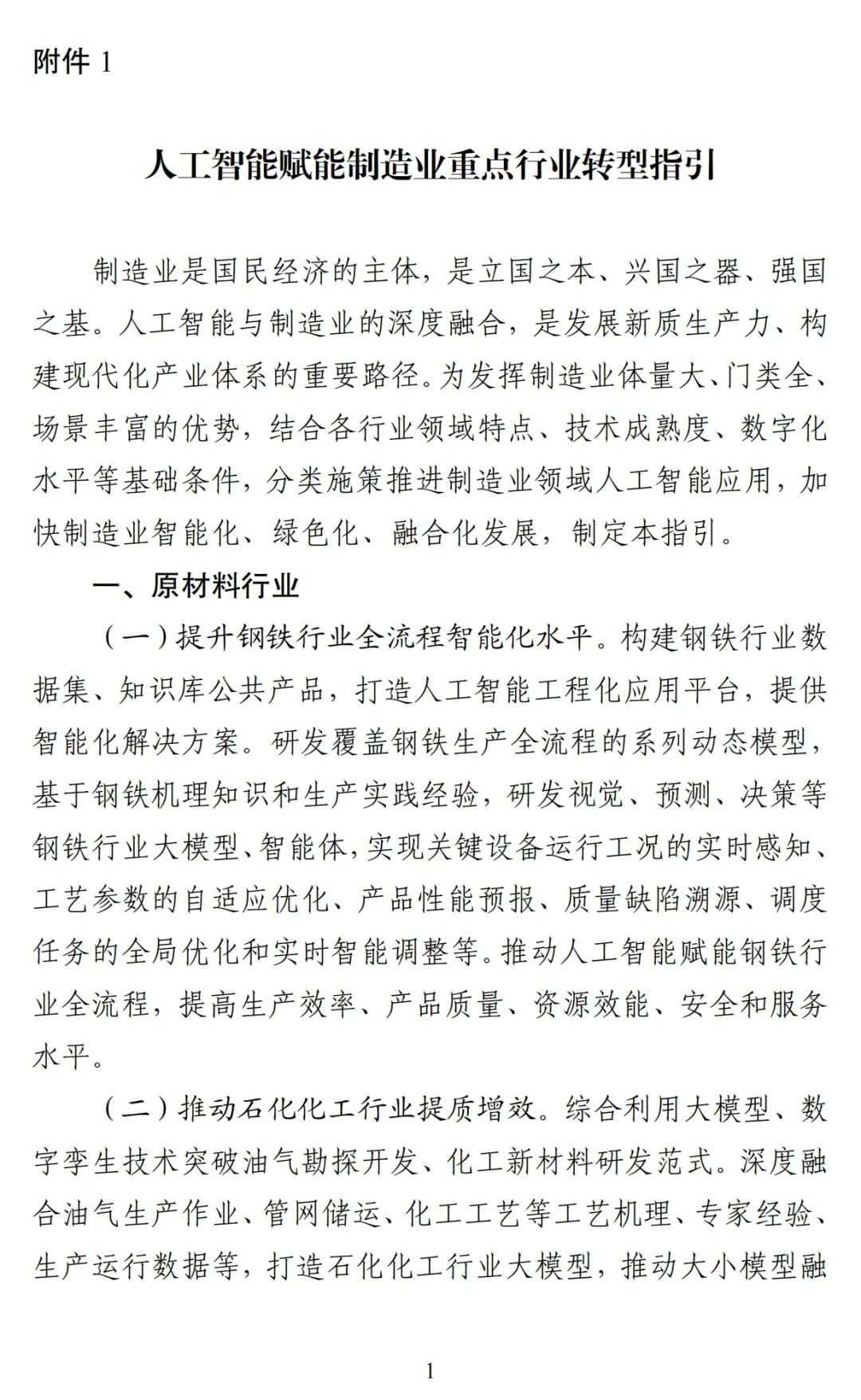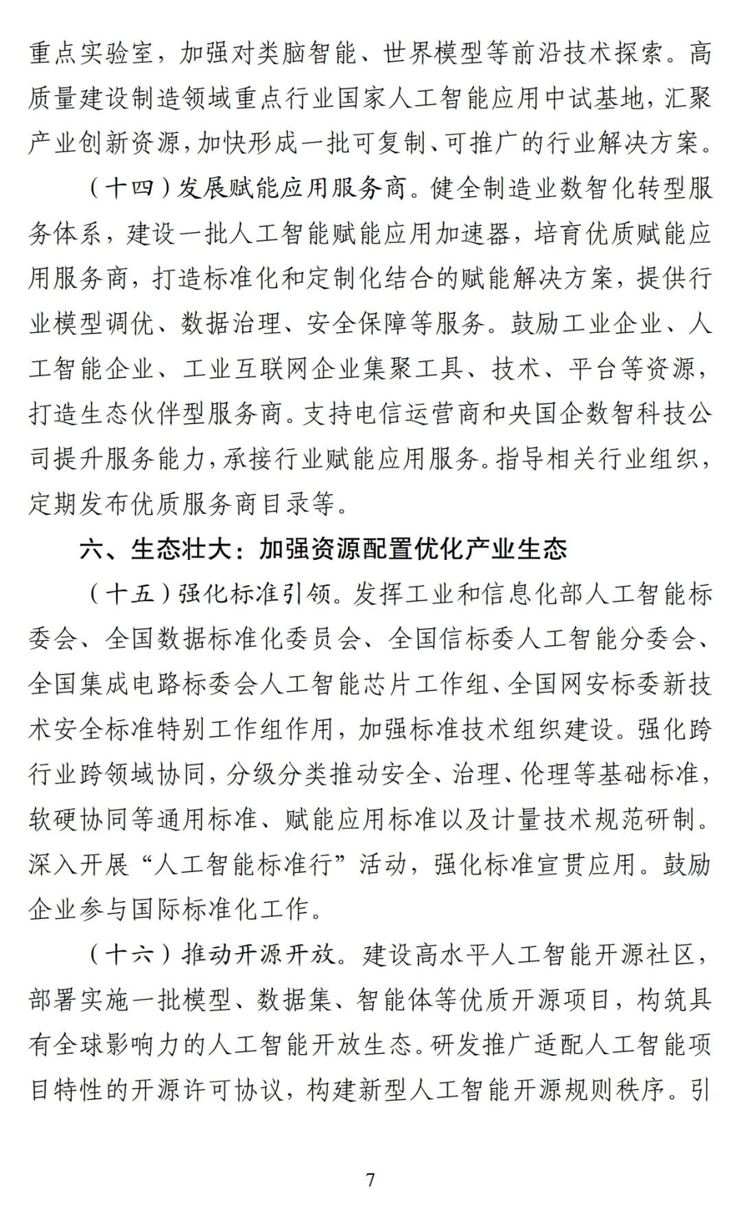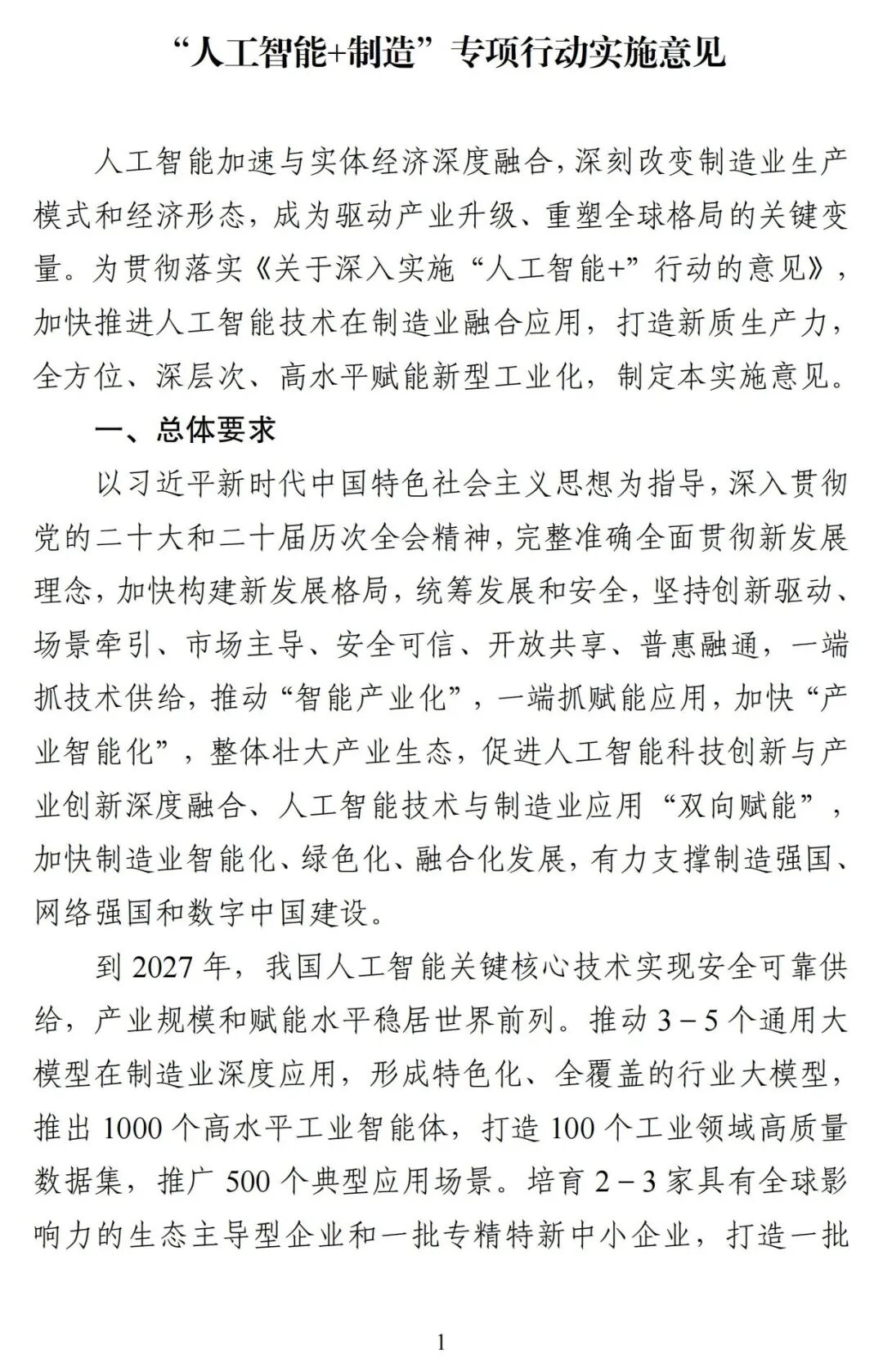 1月7日,工業(yè)和信息化部、中央網信辦、國家發(fā)展改革委、教育部、商務部、國務院國資委、市場監(jiān)管總局、國家數(shù)據局聯(lián)合發(fā)布的《“人工智能+制造”專項行動實施意見》。