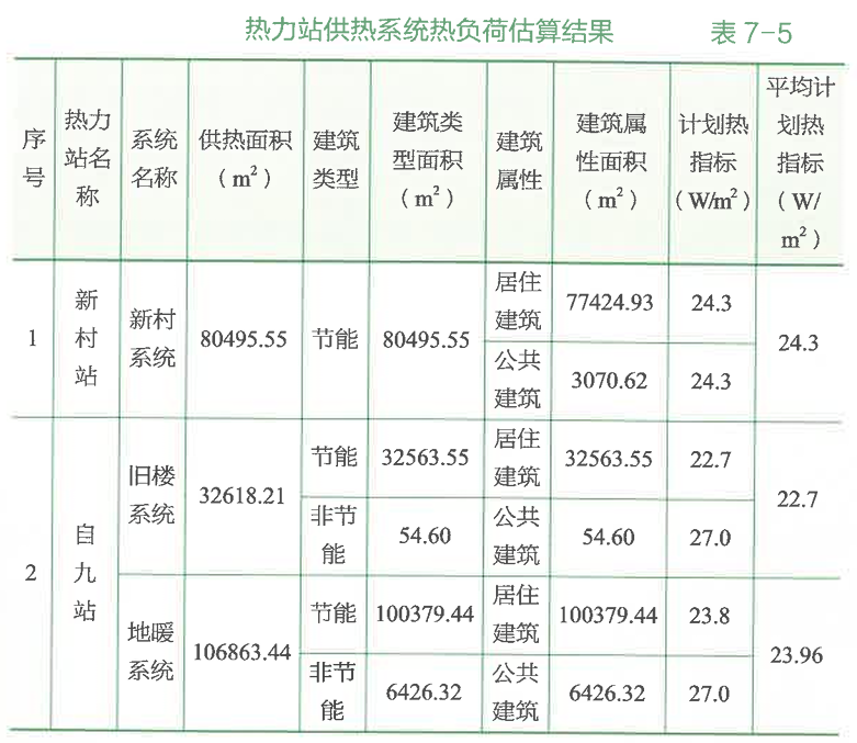 表7-5為部分熱力站供熱系統(tǒng)熱負(fù)荷估算結(jié)果。